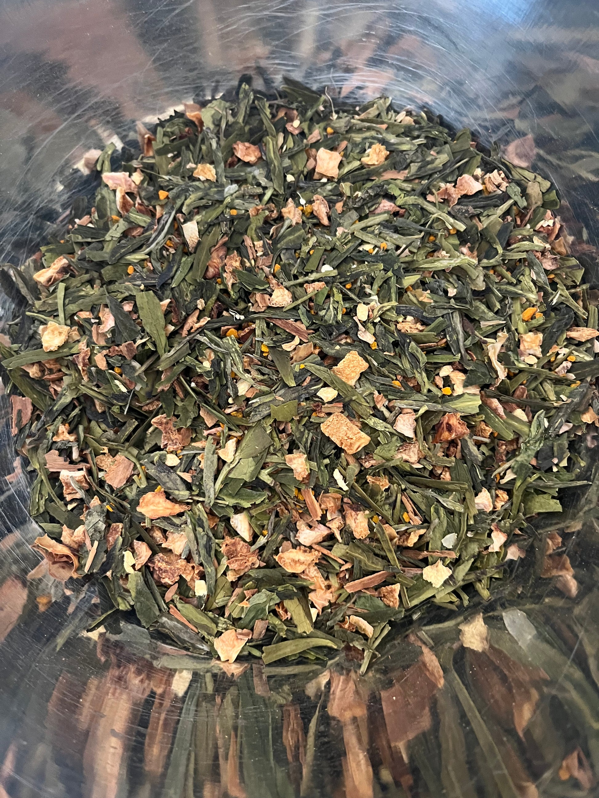 Golden Glow is an anti-inflammatory loose-leaf tea made with Dragonwell green tea, turmeric, ginger, cinnamon, and lemon peel. It’s designed for daily wellness support, especially for those managing chronic inflammation.